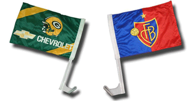 Made from durable 2-ply polyester. 7 1/2" x 10 1/2" double sided flags are printed in full color digital process. Double sided flag can be read properly on both sides.Mounted on a 21 1/2" white plastic staff to attach to your car window and stay in place when window is closed all the way.